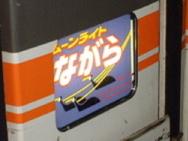 夜行快速ムーンライトながら。東京発大垣行き。古くから愛称名のない「夜行の普通列車」として運転されており、発着駅を取って「大垣夜行」と呼ぶ人も多かった。愛称のない頃は急行列車用165系電車で運転されていたが、JR東海が特急型373系電車を投入したときに車両の置き換えが行われ、「ムーンライトながら」の愛称が付けられた。ヘッドマークは長良川の鵜飼いのイメージ。当時の大垣行きは編成の一部を名古屋で切り離していた(右)。