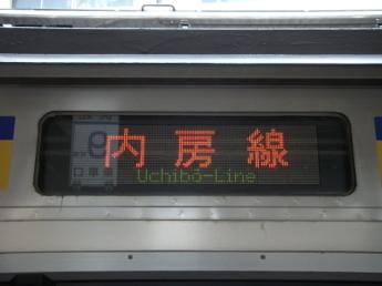 千葉駅から房総方面のローカル列車は原則、209系・211系電車に置き換えられた。4両(総武快速線からの直通を除く)・6両・8両・10両の電車は上の209系が担う。行き先表示は路線(写真左側)と行き先(写真右側)が交互に表示される。表示例を下にいくつか挙げる。