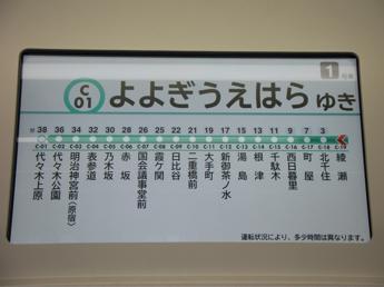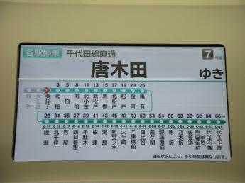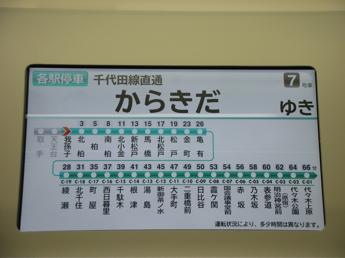 千代田線内で完結する場合は「各駅停車」も「多摩急行」も表示せず、単に行き先のみ表示する。