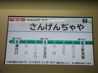 同じく田園都市線内の表示。二子玉川ー溝の口間は大井町線の電車も運転される。