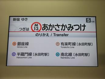半蔵門線内の表示。半蔵門線はシンボルカラー・紫色のライン。
