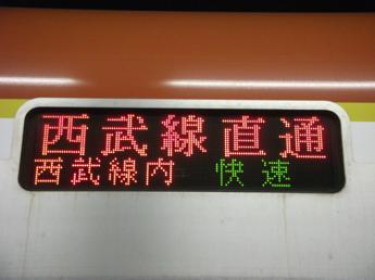東京メトロ10000系電車。地下鉄線から西武線に直通する列車。地下鉄内で急行運転する場合でも、小竹向原から先の種別が列車によって異なる場合がある。
