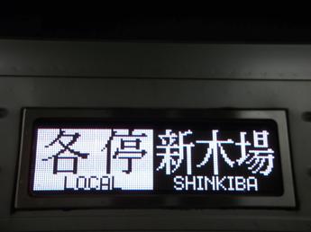 東武50050系電車。「東武線内急行運転」の場合の表示。半蔵門線直通列車の場合は(1)種別・行き先ー(2)「半蔵門線直通」ー(3)号車番号、の順で交互に表示させている。半蔵門線・田園都市線内を含めて各駅停車となる場合は押上駅からは行き先のみ表示となる(下右、後述も参照)。